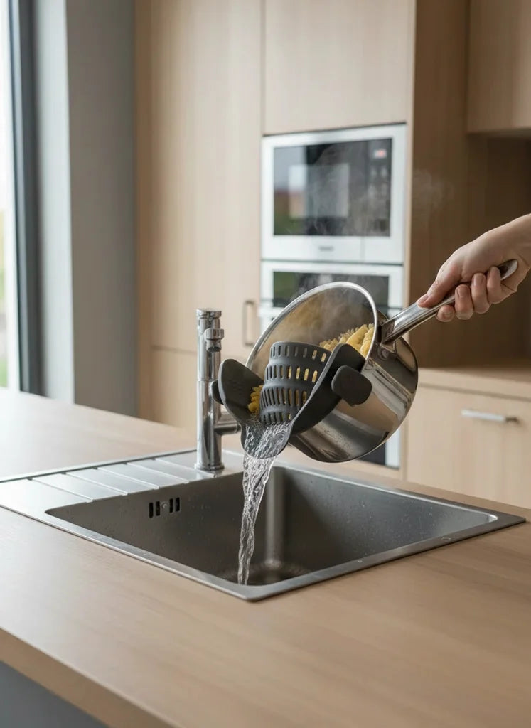 Notre égouttoir clip-on est une révolution! Il libère vos mains, s'adapte à tout, et se range sans effort. Plus besoin de tenir une passoire chaude ou de chercher la bonne taille. C'est la modernité et l'efficacité au service de votre cuisine, pour une expérience culinaire améliorée.